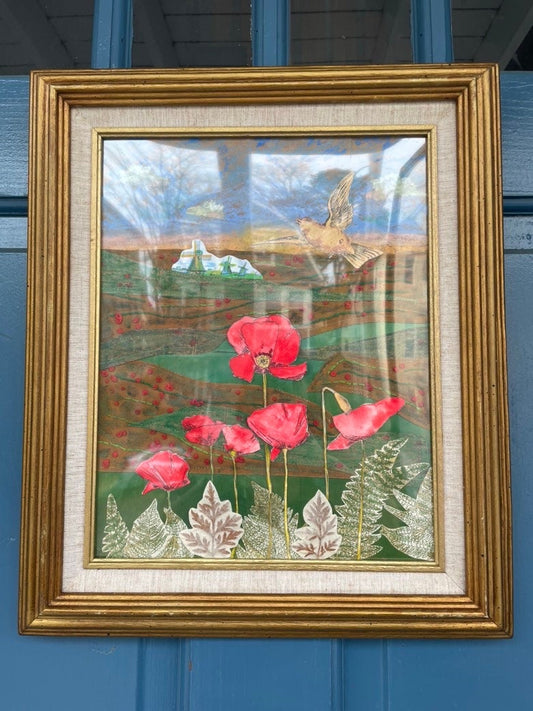 The Larks, still bravely singing, fly; 11x14 mixed media collage, framed