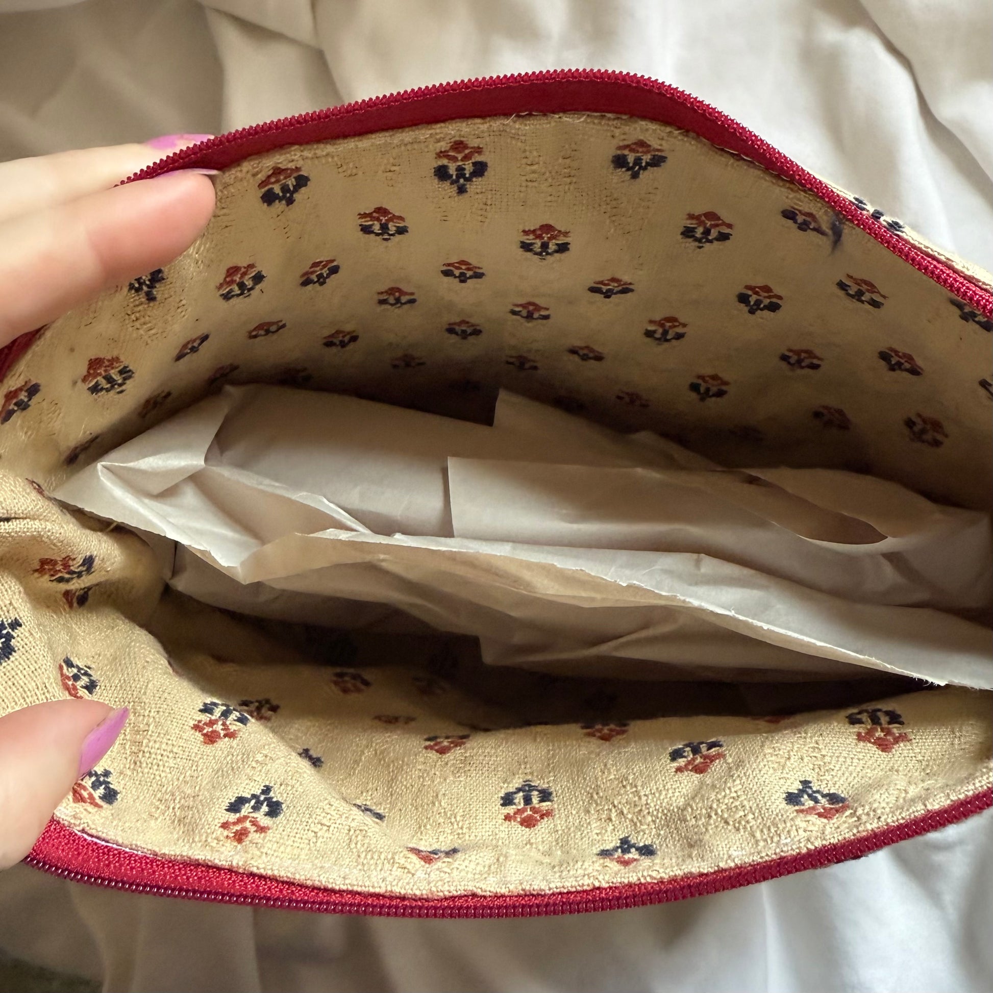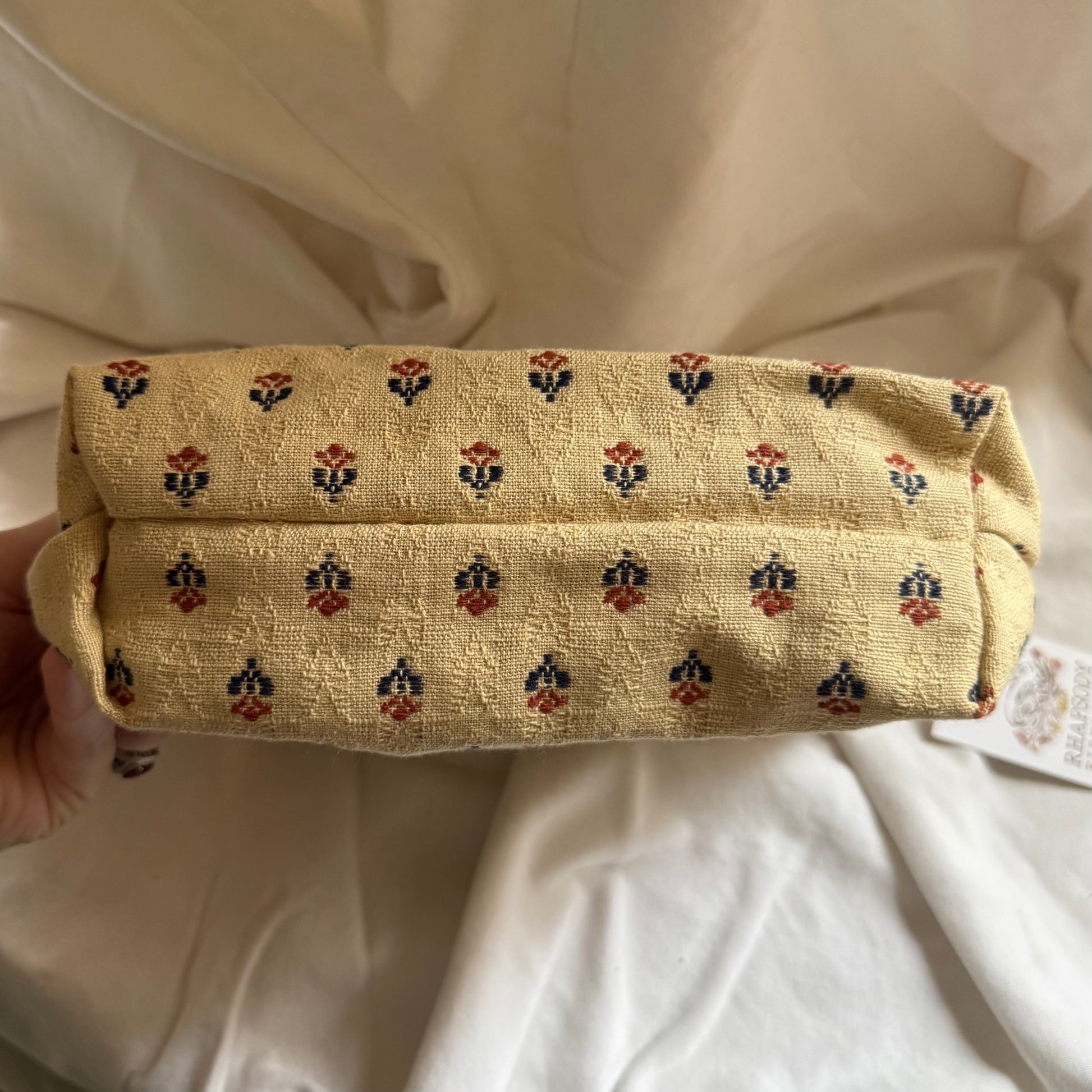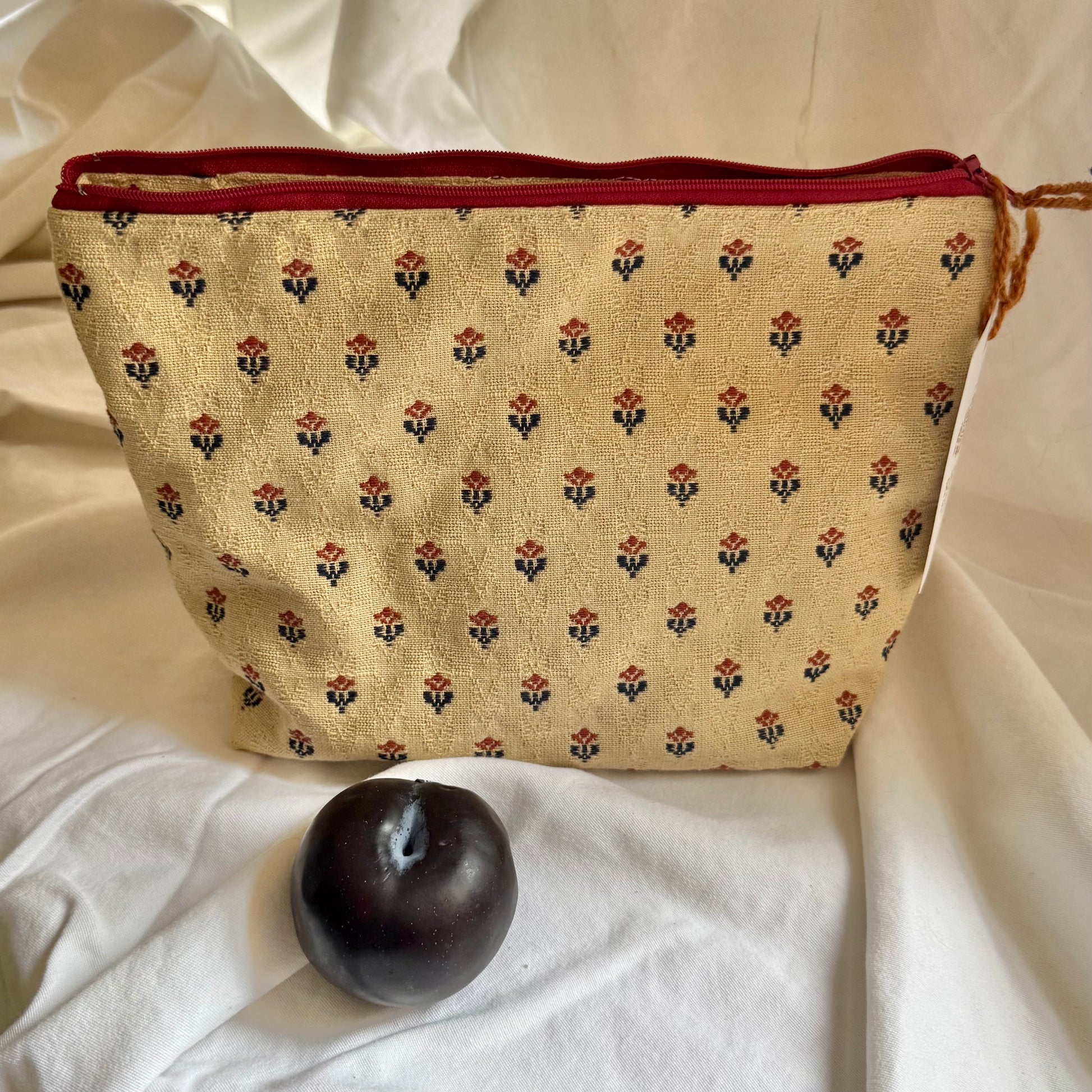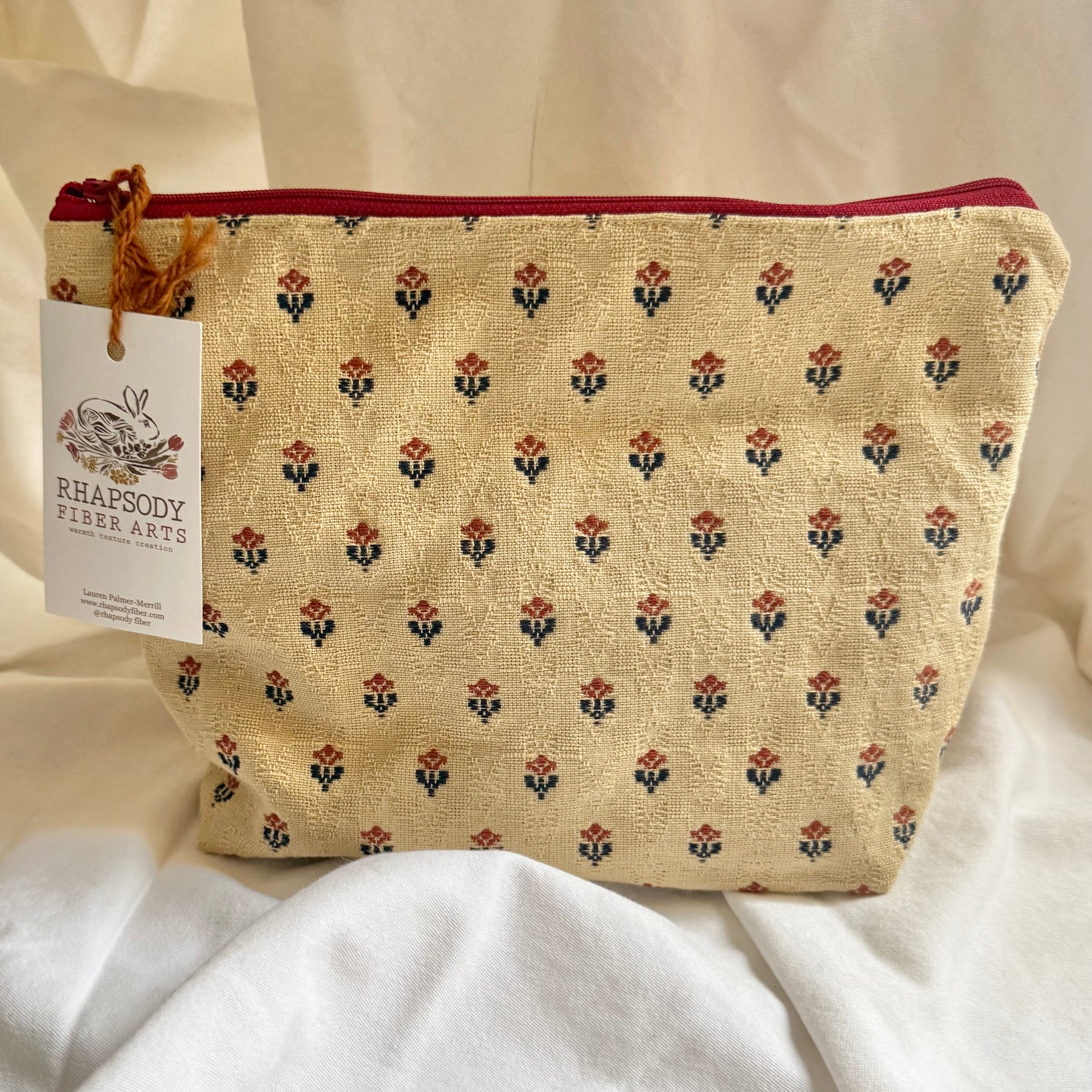 These flat-bottomed zipper pouches are made with a beautiful vintage Americana-style fabric, which would also feel very at home in the Victorian era. Fully lined with heavy-weight fabric, these bags are sturdy and can stand on their own even empty. Fill with knitting project, cosmetics, or whatever your heart desires!